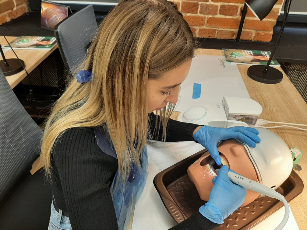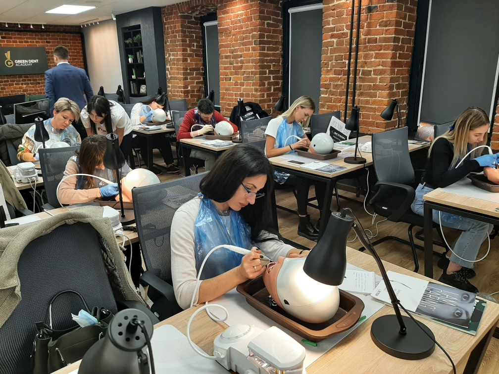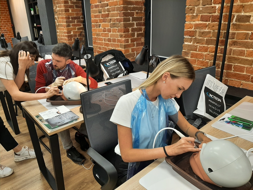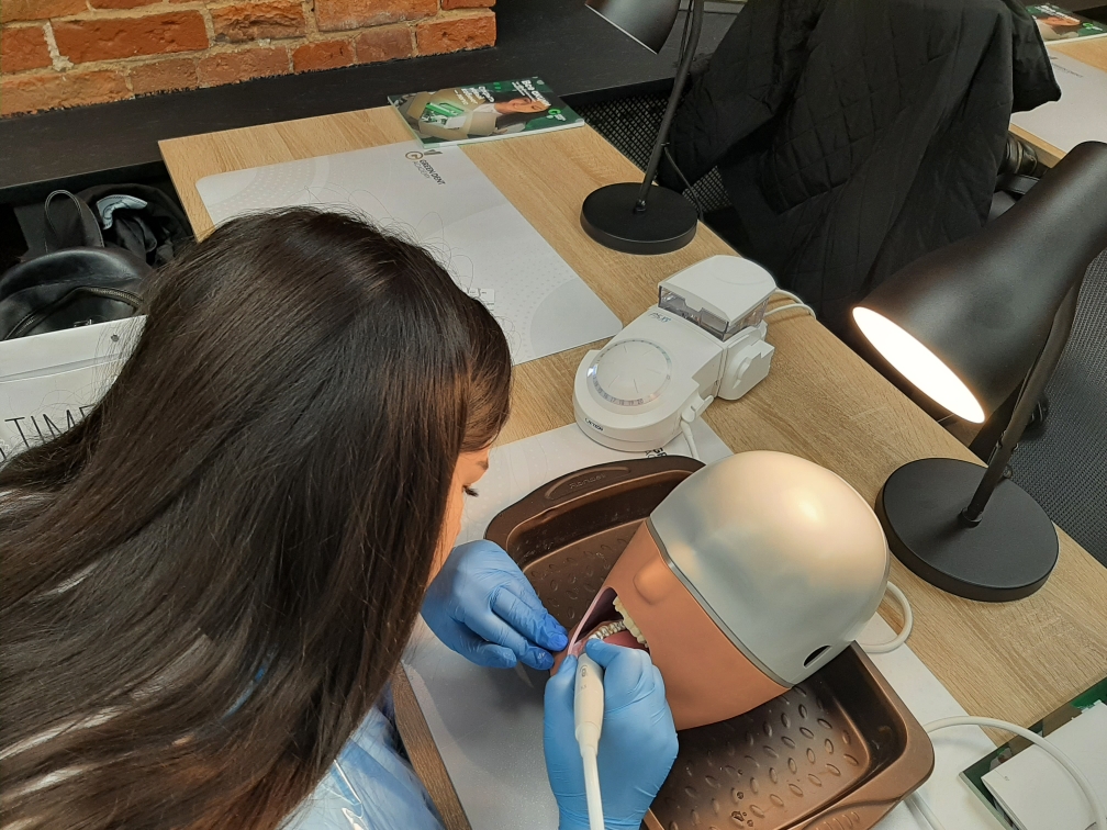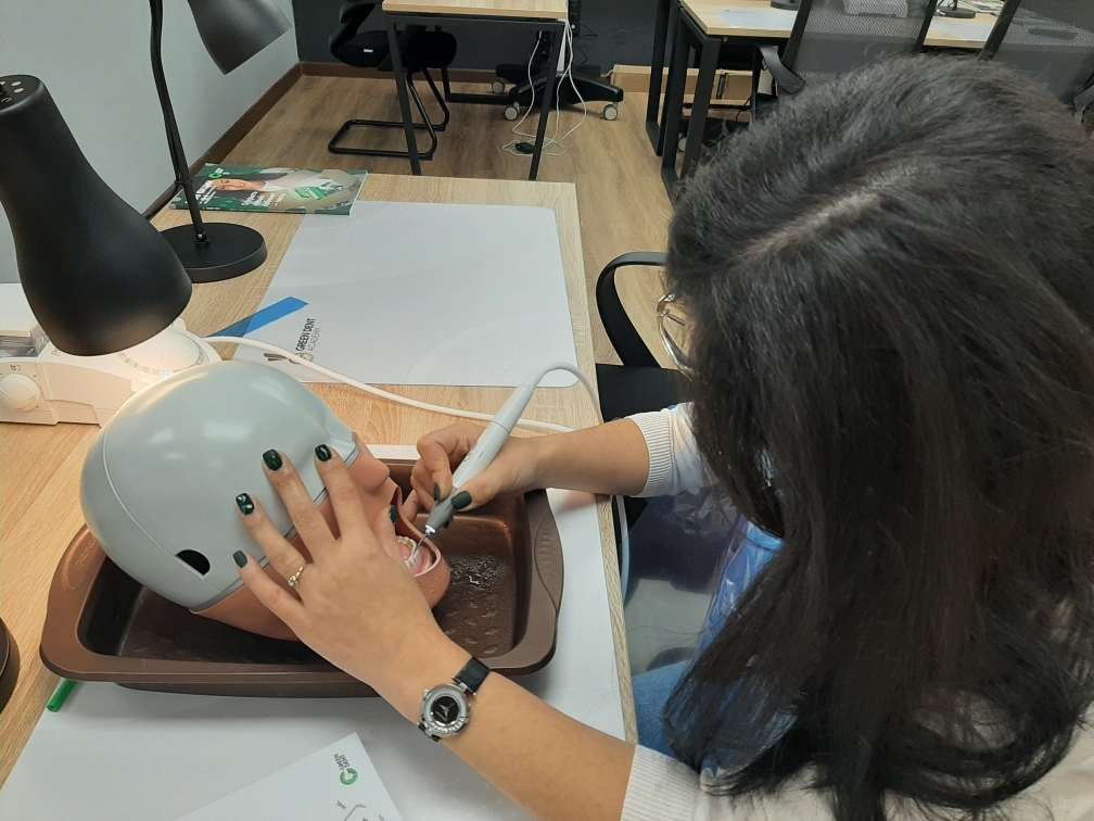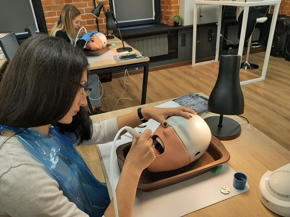 А на практической части специалисты-стоматологи отработали мануальные навыки на фантомах при помощи ультразвукового аппарата.