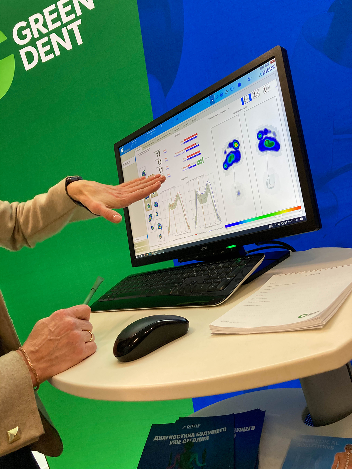 Также на нашем стенде была представлена инновационная система DIERS STATICO 3D, на которой все желающие могли пройти диагностику и получить детальный анализ опорно-двигательной системы без использования рентгеновского излучения. Интересно? На фотографиях ещё интереснее .